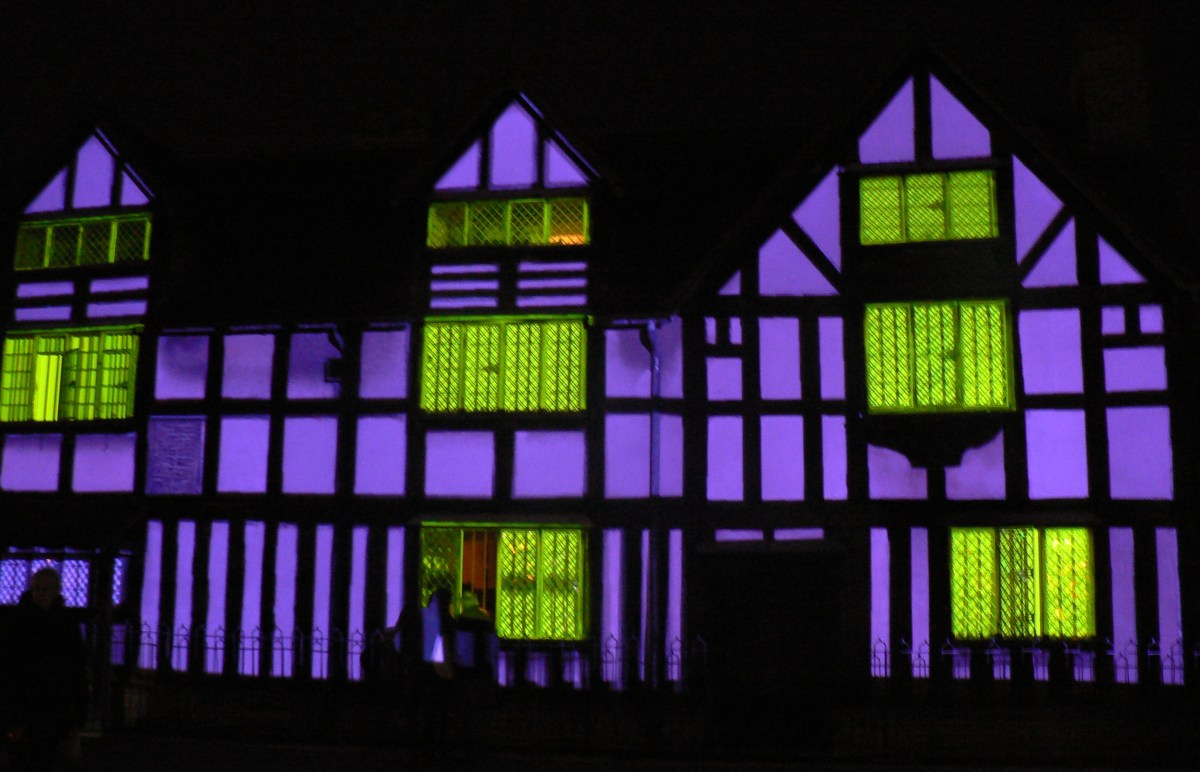 P1090986 Published March 17, 2015 at 2754 × 1773 in Wall ~ Weekly Photo Challenge ← Previous Next → Light show projected onto the wall of William Shakespeare’s Birthplace in Stratford on Avon