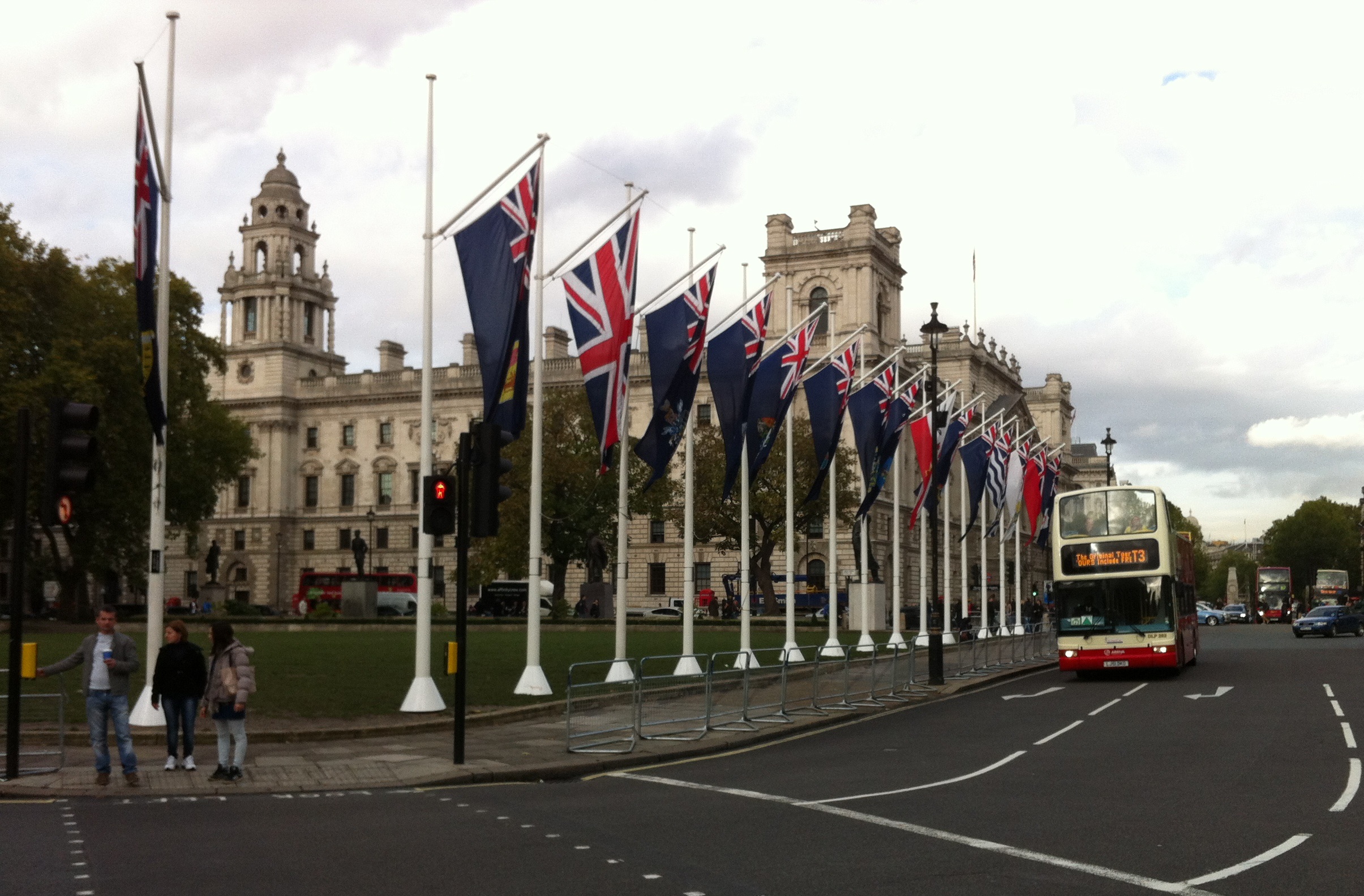 Flags and London Tour Bus
